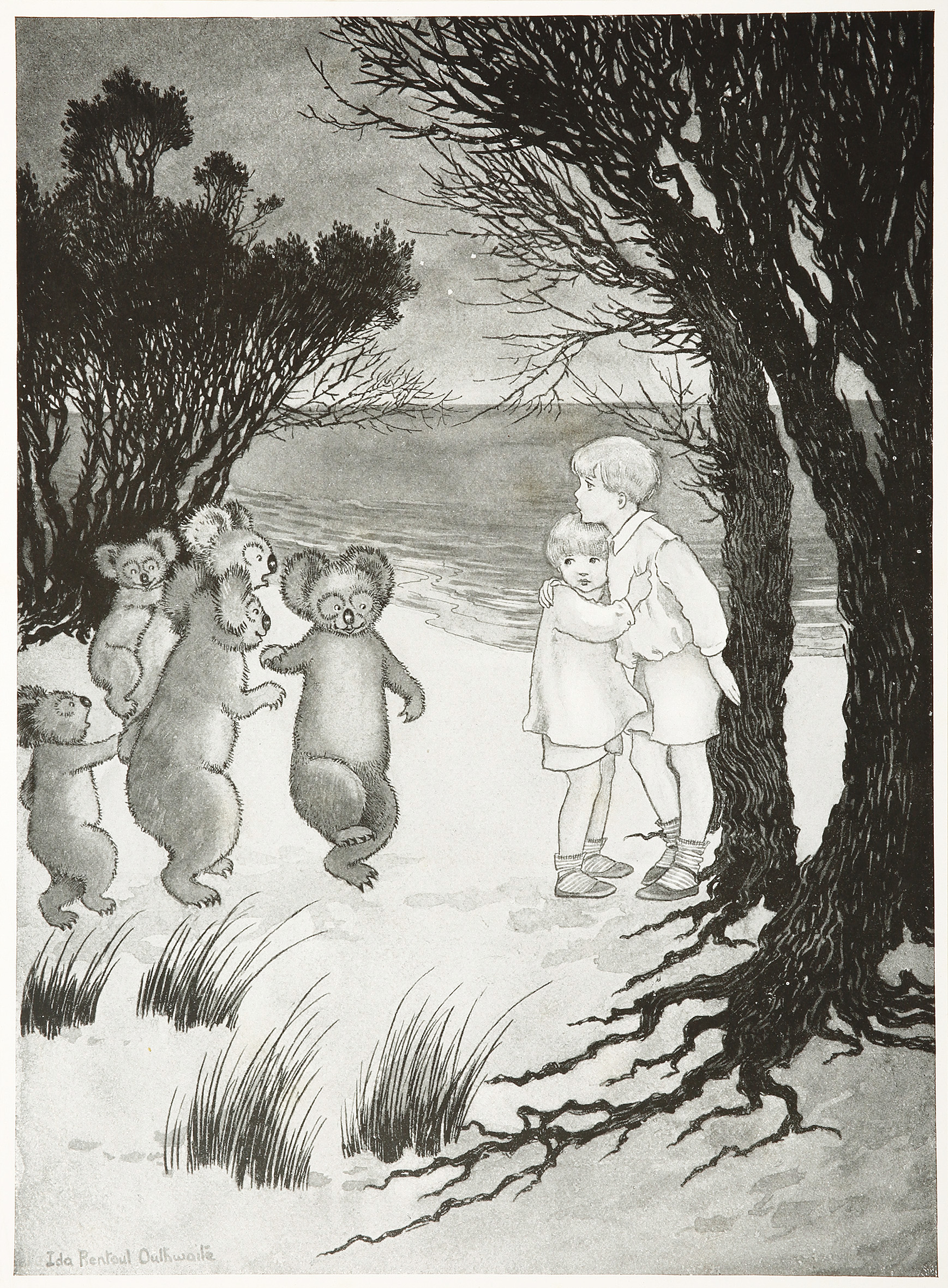 Ida was born into a gifted literary and artistic family drew prolifically from childhood. Her illustrations were first published in 1903 in New Idea. Following her marriage she published little for ten years. In 1916 she brought out her first coloured work, Elves and Fairies, a deluxe edition produced entirely in Australia by Thomas Lothian. The series was a great success and journalists who interviewed the now famous illustrator were charmed to find her small and whimsical like her creations. Ida went on to become increasingly well known in England, France and America. Her illustrations are her enduring legacy of her love of the Australian bush.