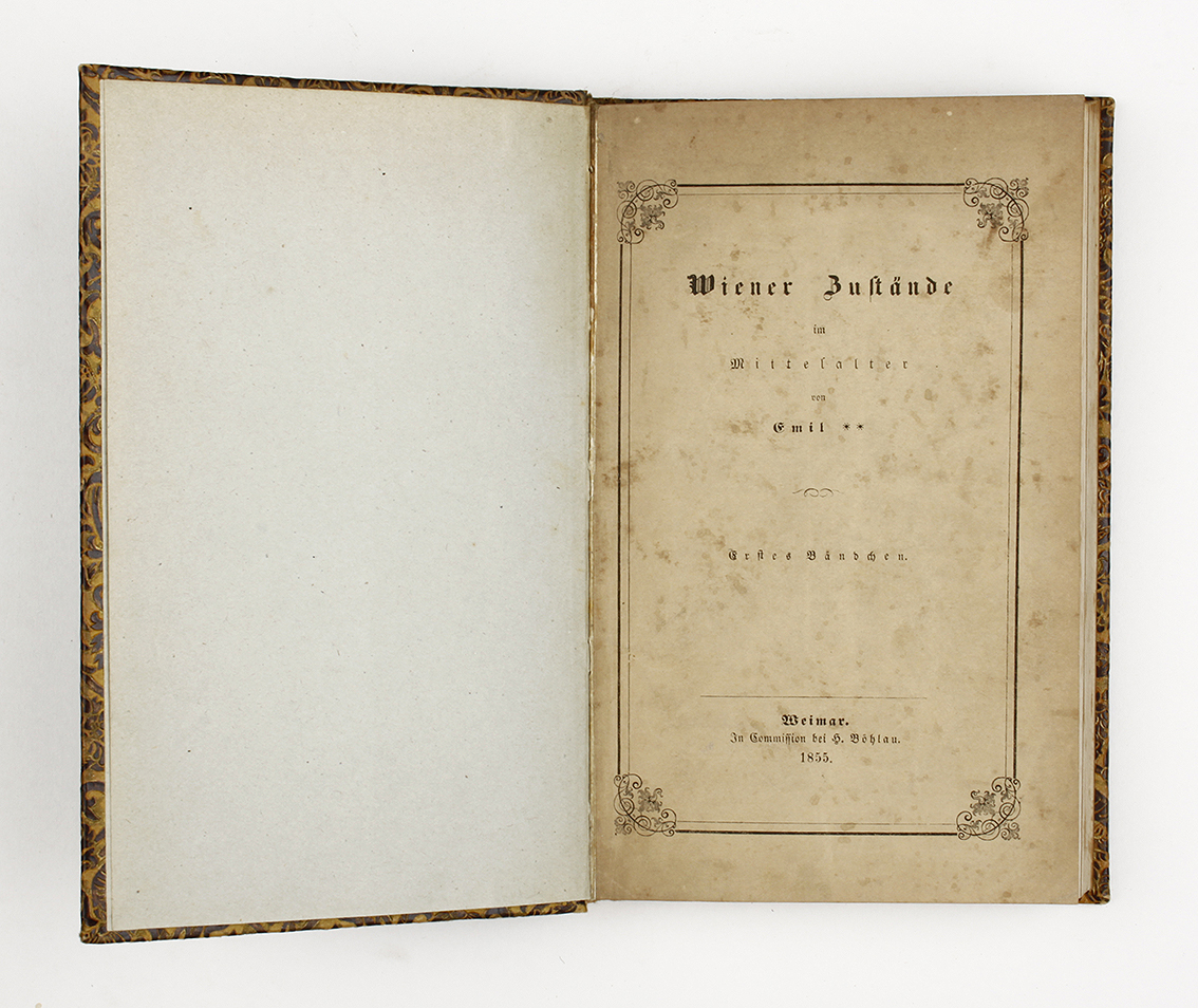 Scarce Viennese book describing Vienna in the Middle Ages, 1855, 8ov, two books in one, 1st 114pp, 2nd 180 pp., 2 ll., 68pp.