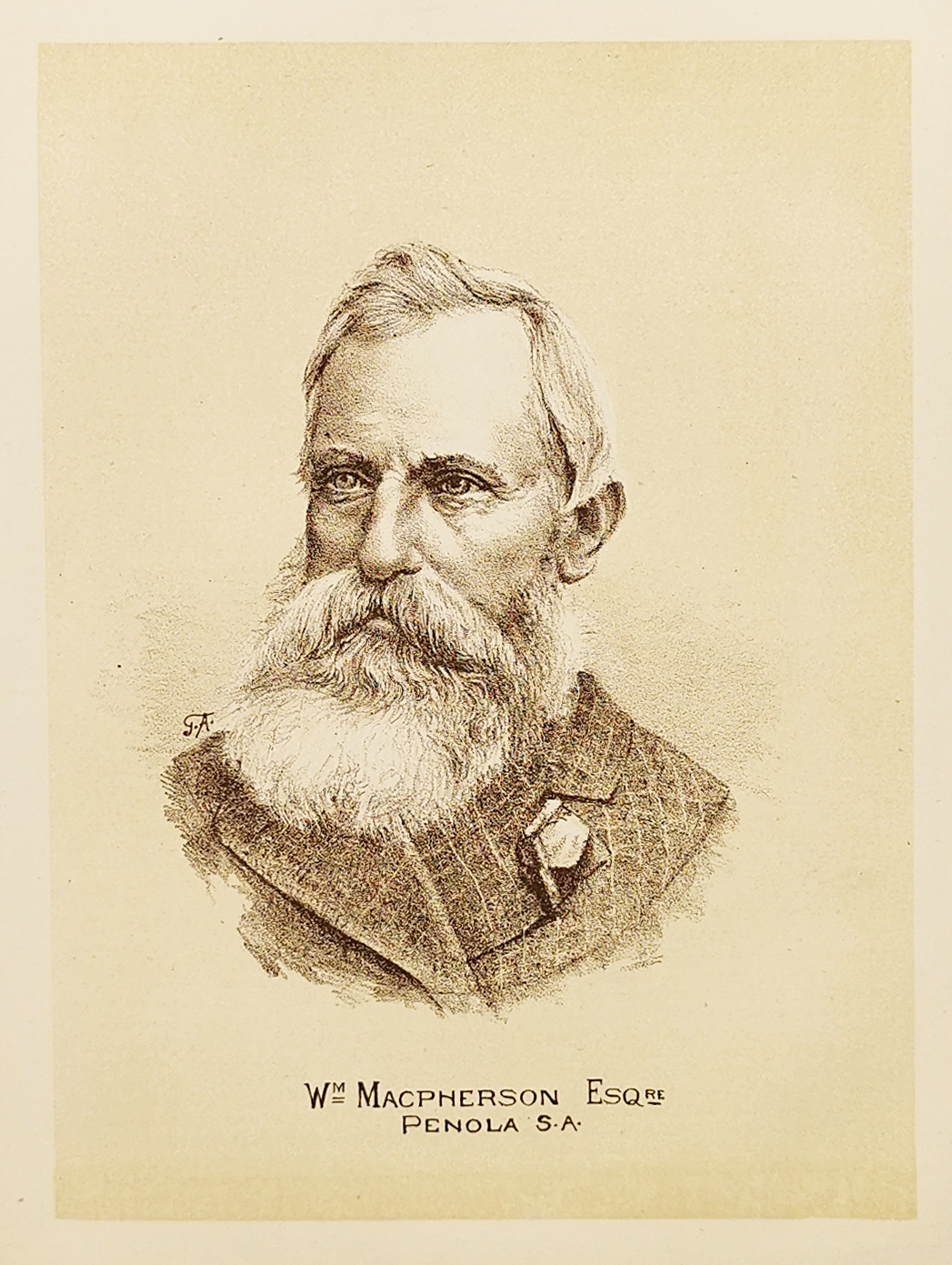 Scarce c.19th lithographic portrail of Wm Macpherson, Penola.