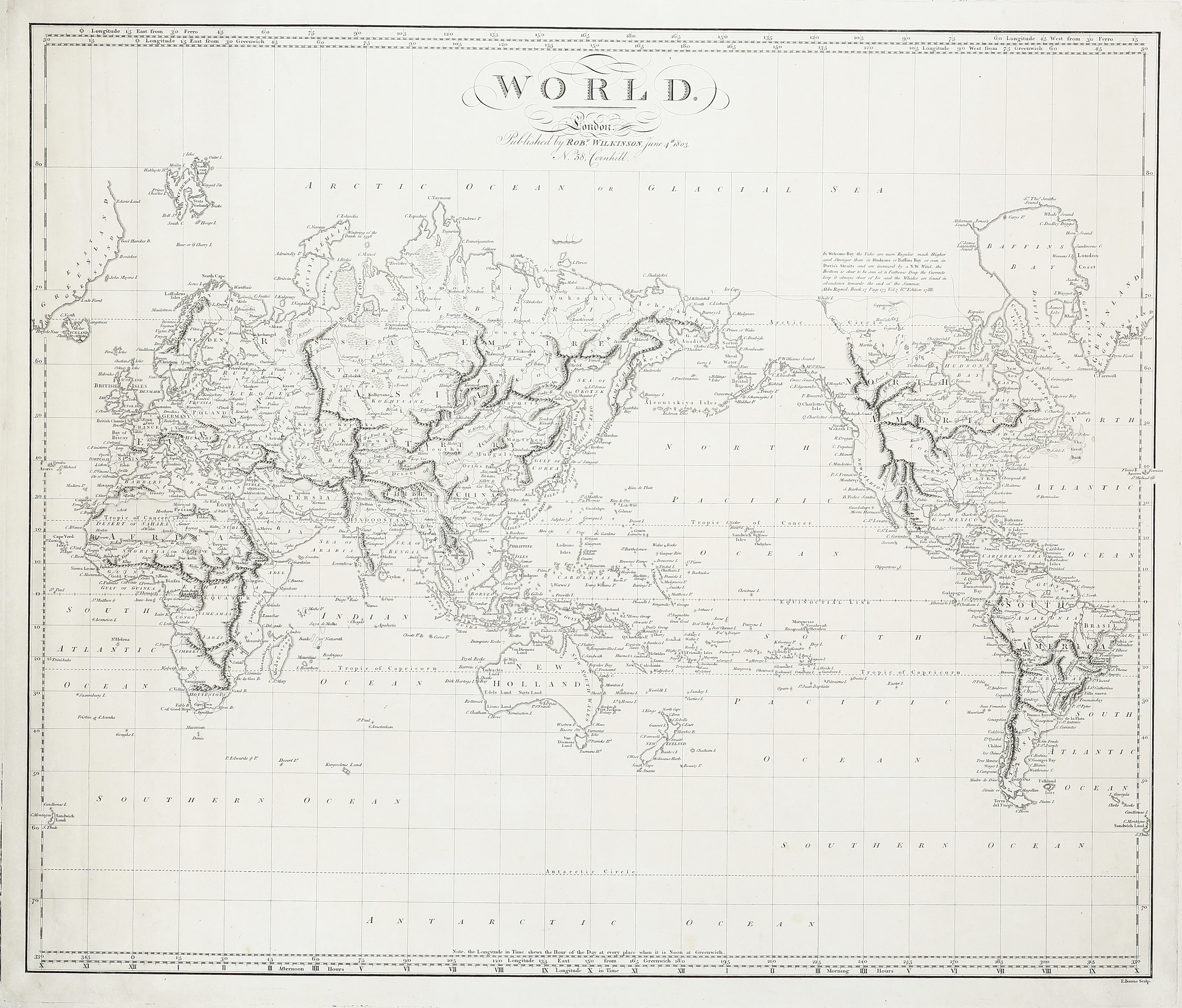 Wilkinson began his career as an engraver and printseller before emerging as a map publisher in his own right in the 1780s. He acquired and reissued numerous copperplates from earlier firms, particularly those of John Bowles and his successors, updating them to reflect contemporary geographical knowledge. Among his most significant publications is A General Atlas, Being a Collection of Maps of the World and Quarters, the Principal Empires, Kingdoms & States throughout the Known World (first issued 1794). This work compiled maps engraved by several hands, many adapted from earlier Bowles plates but brought up to date in line with late c.18th exploration and political change.