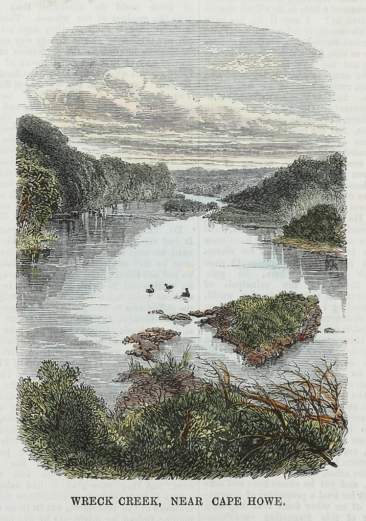 Scarce hand coloured engraving of Shipwreck Creek, east Gippsland, Victoria.
