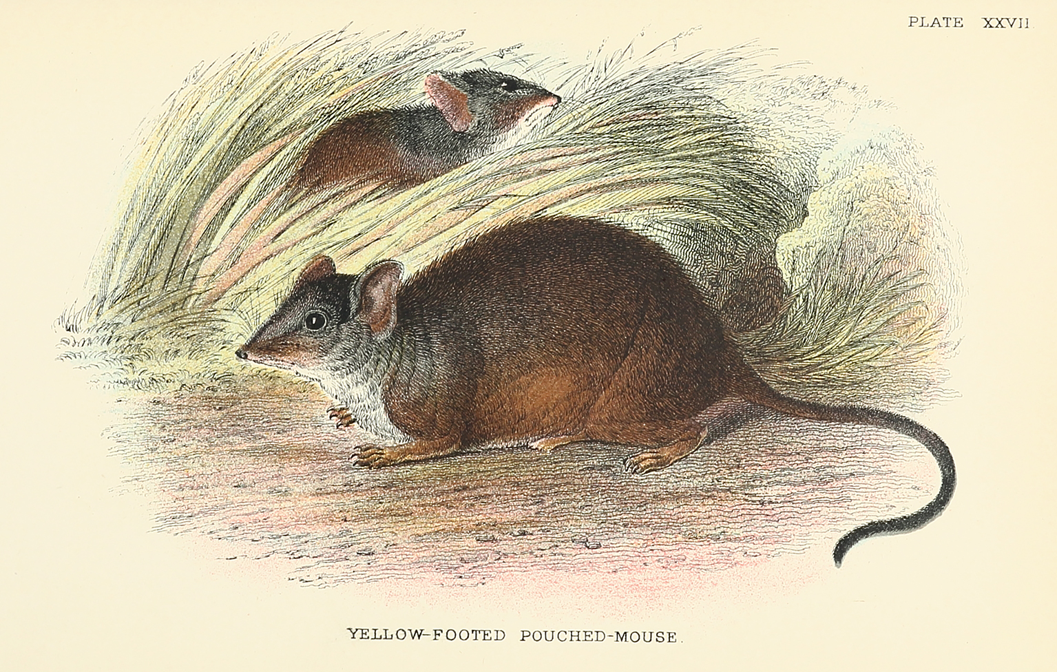 Yellow-Footed Pouched Mouse - Antique Print from 1896