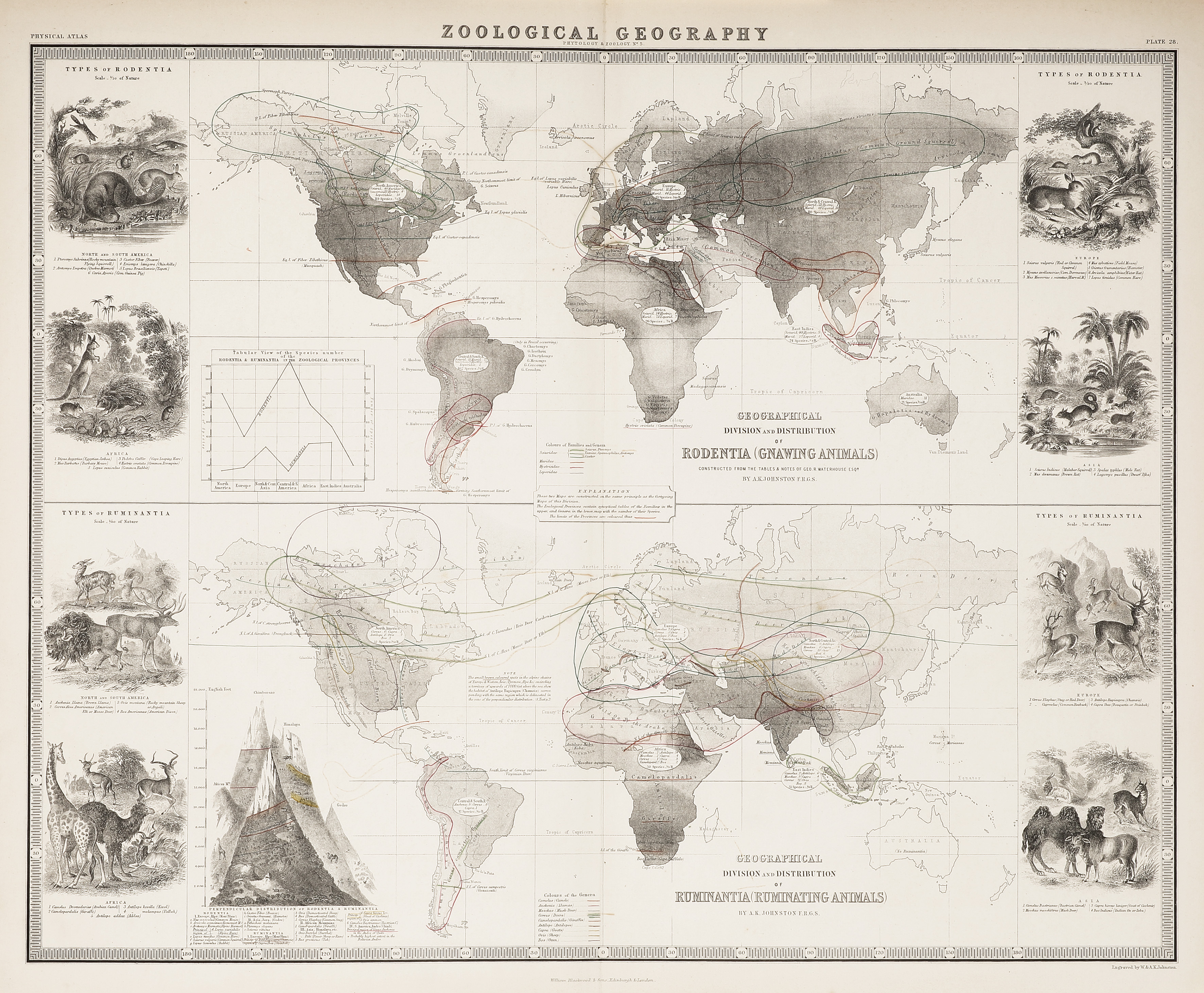Spectacular world zoological map, from the extra large sized issue of Johnston’s, Physical Atlas of Natural Phenomena.